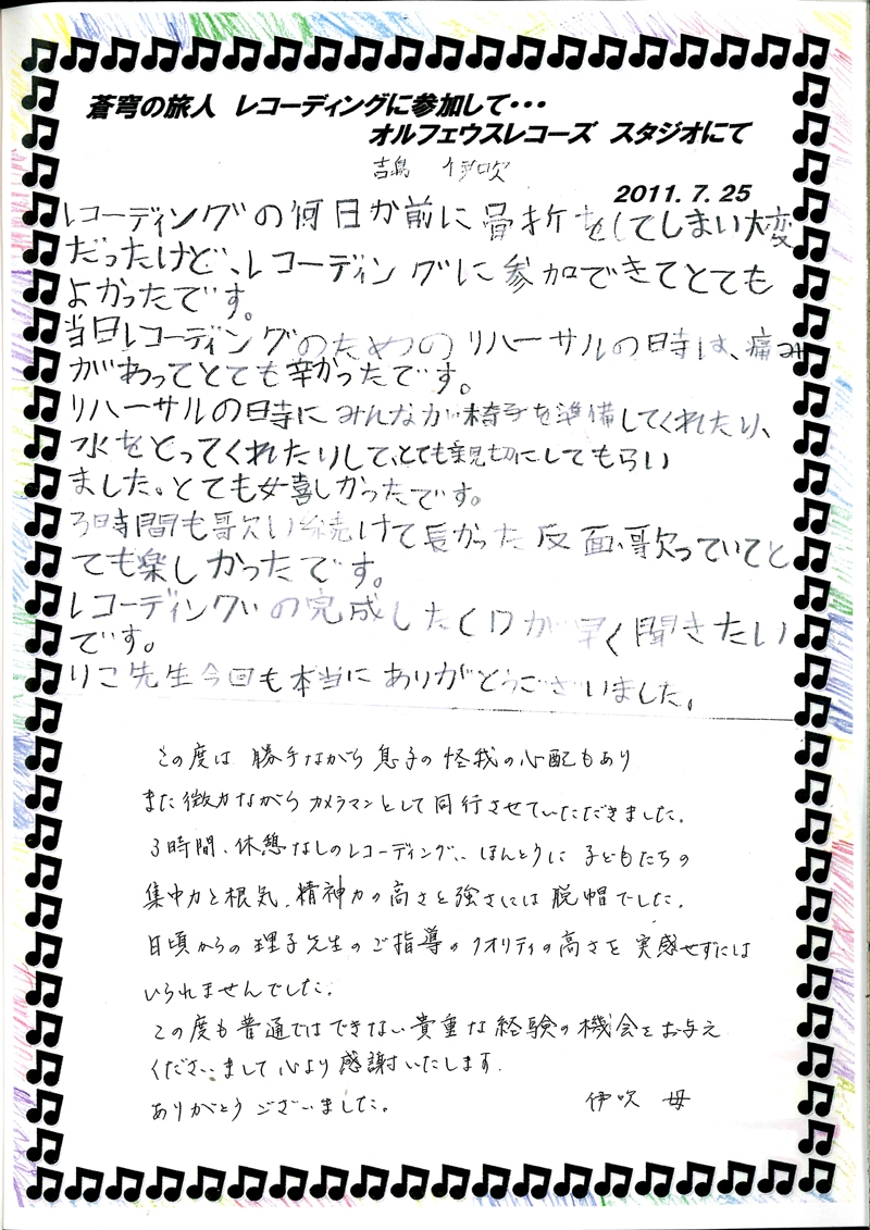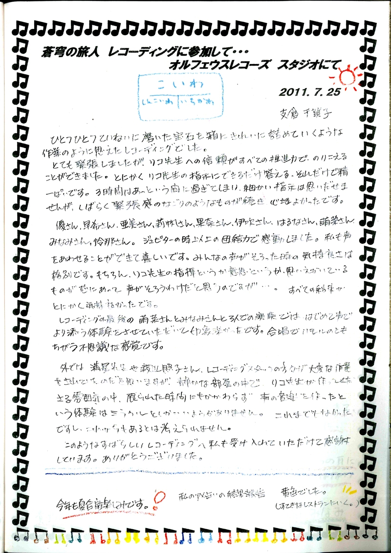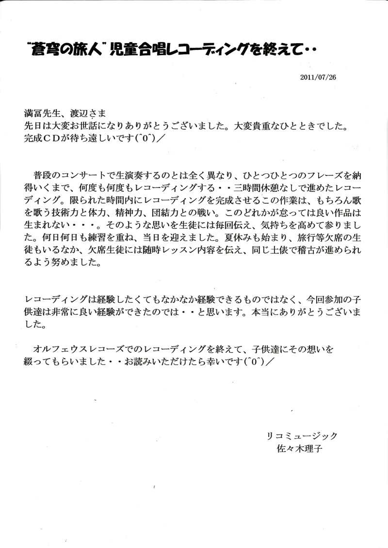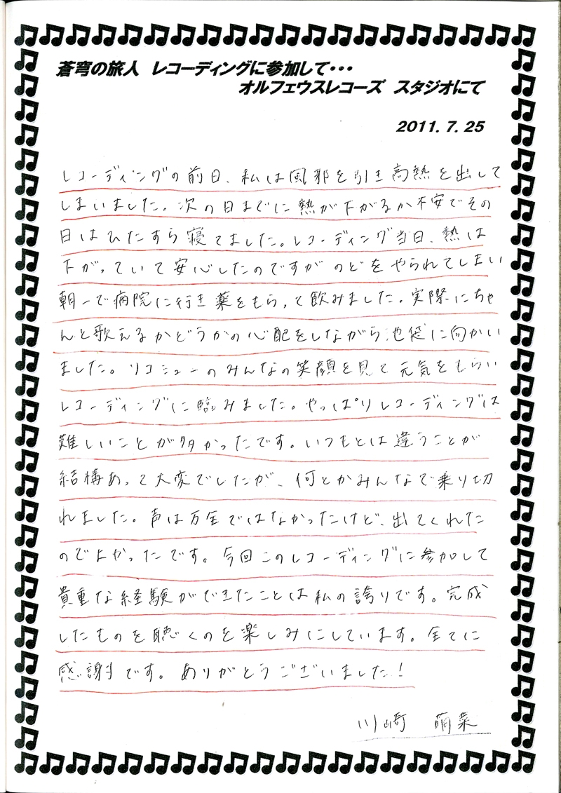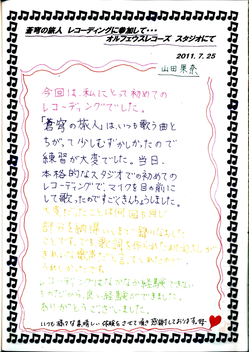2011年7月25日に「蒼穹の旅人(そうきゅうの旅人)」のレコーディングが行われました!
